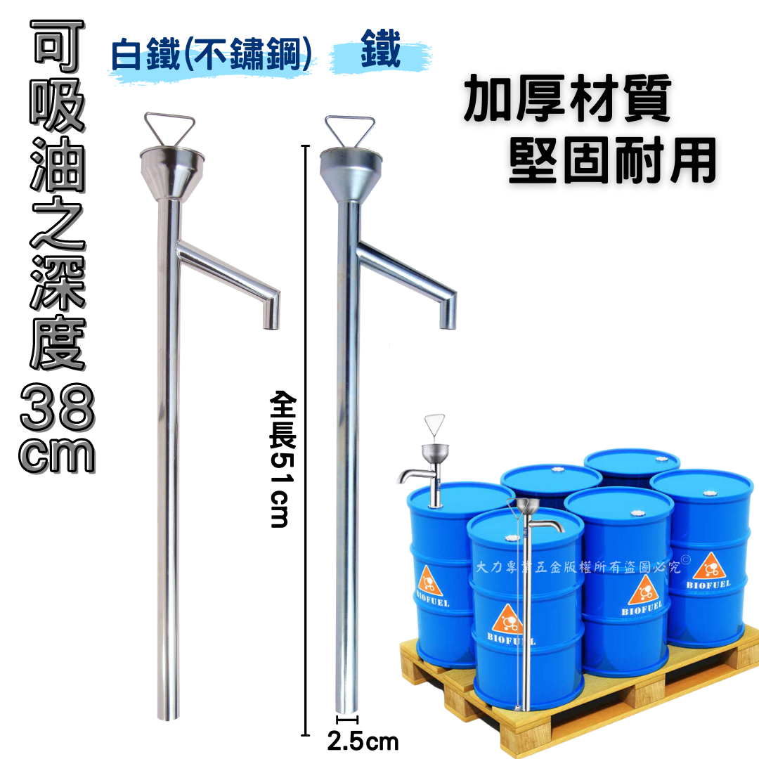 全長 : 51cm, 底部∅ : 25mm, 有效深度:38cm (可吸油之深度)。