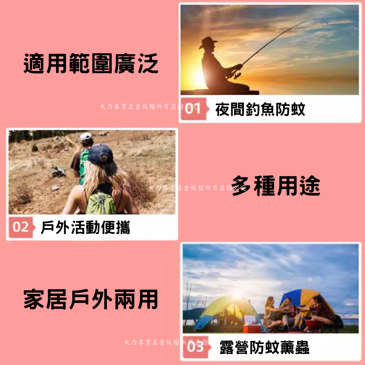 適用範圍:夜間釣魚、戶外活動、露營適用範圍廣泛 輕鬆戶外 蚊蟲掰掰