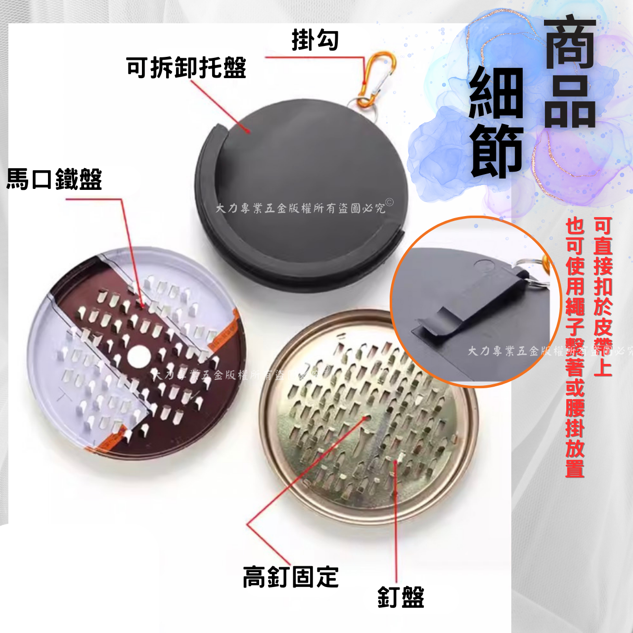 產品特色: 可懸掛 可随身 可直接扣於皮帶上也可使用繩子繫著或腰掛放置