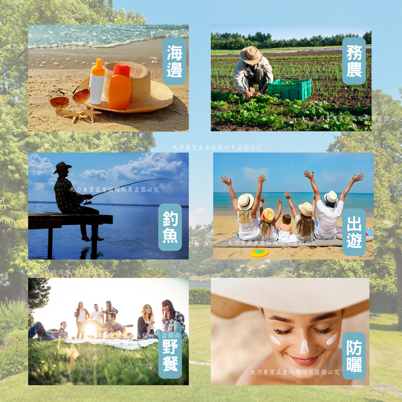 適用範圍:出遊防曬、郊遊、野餐、海邊防曬、釣魚、務農